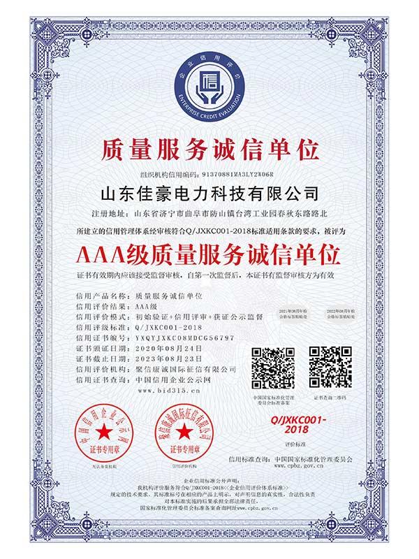 > AAA級質量服務誠信單位_中文版